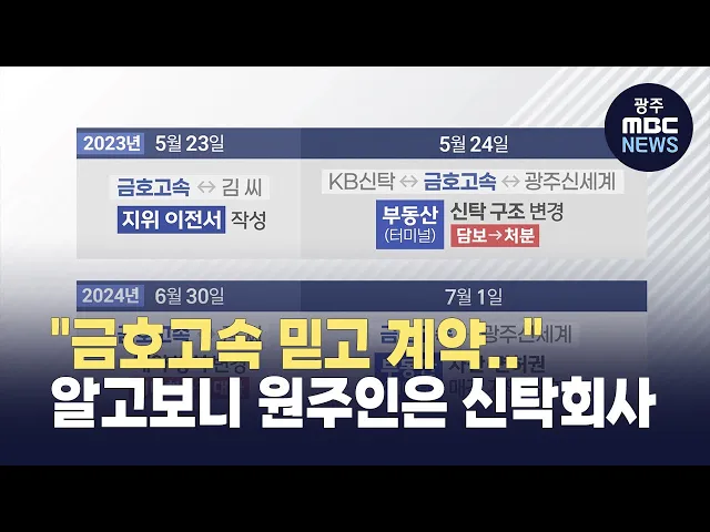 (앵커)광주종합버스터미널 소유주였던 금호고속이 신탁회사에 부동산 소유권을 넘긴 사실을 숨기고, 임대차 계약을 맺어왔다는 주장이 제기됐습니다.터미널 운영권을 원활하게 매각하기 위해 불공정한 계약도 유도했다는 강변입니다.금호 측은 '소송을 유리한 국면으로 이끌기 위한 억지 주장에 불가하다'고 반박하고 있습...