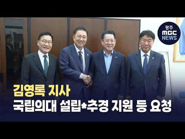 김영록 전라남도지사가 오늘(1일) 이한주 국정기획위원장을 만나 새 정부 국정과제에 통합 국립의대 설립 등 전남 핵심현안을 반영해줄 것을 적극 요청했습니다.이어 국회를 찾은 김 지사는 더불어민주당 김병기 원내대표 등과 만나 지역 현안을 논의하고, 정부 제2회 추경 지원을 건의했습니다.김 지사는 이 자리에서 지역...