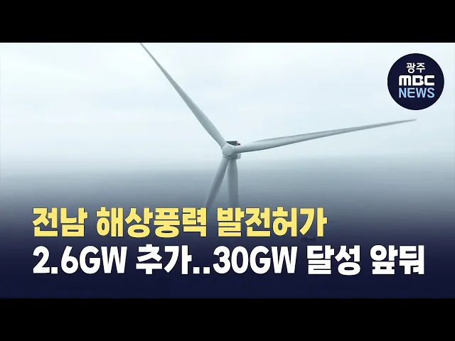 전남 해상에 해상풍력 발전허가가 2.6기가와트 추가되면서 조만간 30기가와트가 달성될 전망입니다.전라남도에 따르면 지난 27일 산업부 전기위원회 발전사업 심의 결과 신안 블루자은과 블루임자, 블루신의 등 전남 서해안 해상풍력 7개 사업 2.6기가와트 규모의 발전사업 허가를 받았습니다.전남은 기존 허가받은 18.7기...