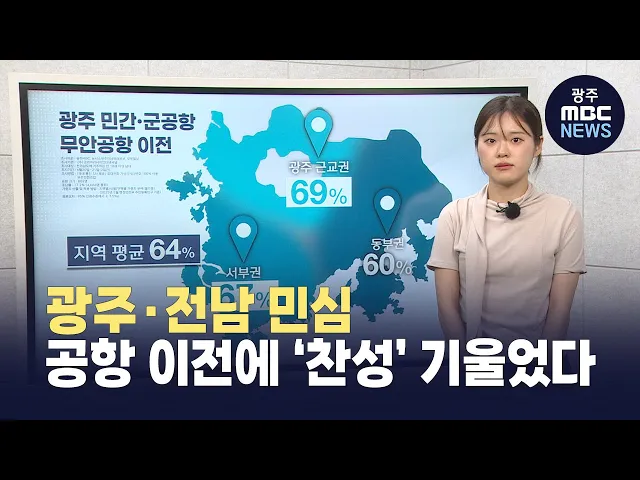 (앵커)답보를 거듭하고 있는 광주 민·군 통합공항의 무안 이전 문제를 두고, 광주시민은 물론이고 전남도민의 찬성 비율이 나날이 뚜렷해지고 있습니다.특히 무안군을 비롯한 공항 직접 영향권 주민들의 긍정 응답 변화가 눈에 띄는데요.임지은 기자가 정리했습니다. (기자)이재명 대통령이 '책임지고 해결하겠다'고 약속한...