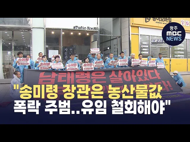 전남 농민들이 송미령 농림축산식품부 장관의 유임을 철회하라고 정부에 촉구했습니다. 전농 광주전남연맹 등 4개 단체는 오늘(24) 민주당 전남도당 앞에서 기자회견을 열고 송 장관은 전 정권의 내란 공범이자, 수입 확대를 통한 국내 농산물가격 폭락을 일으킨 주범이라고 지적했습니다.특히 이재명 대통령이 송 장관 유...