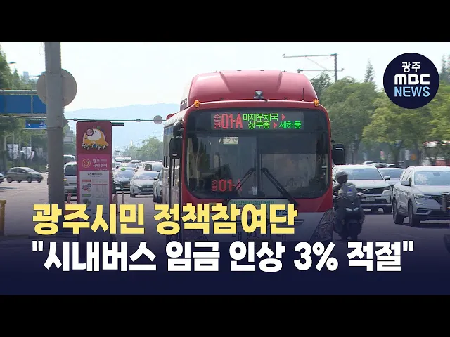 광주 시내버스 파업이 2주 가까이 이어지고 있는 가운데지방노동위원회가 조정안으로 내놓은 운전원 임금 3% 인상안을 노사가 받아들어야 한다는 조사 결과가 나왔습니다. 광주시가 지난 16일부터 사흘간 시민 정책참여단 3만5540명을 대상으로 온라인 의견수렴을 한 결과응답자의 58.6%가 적정 임금 인상률로 3%를 꼽았습...