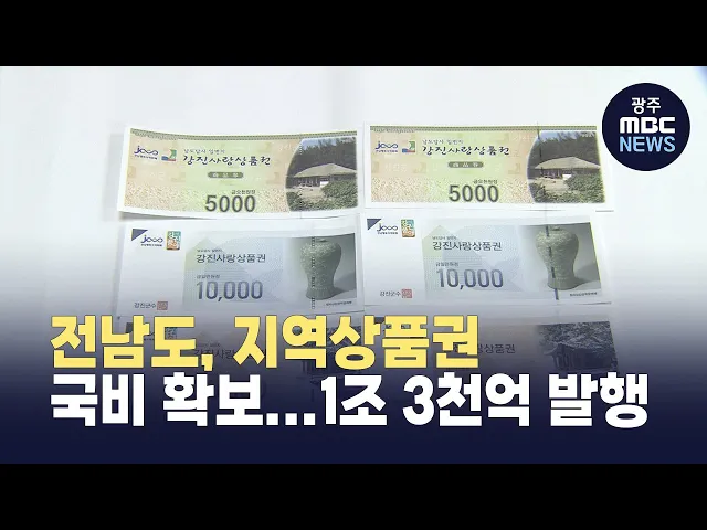 전라남도가 8,868억 원의 지역사랑상품권을 추가 발행합니다.전남도는 지난달 지역사랑상품권 추경예산이 국회를 통과하면서일반지원과 여수시, 무안군의 특별지원을 포함해 317억 원의 국비를 확보했다고 밝혔습니다.지난 4월까지 4천2백여억 원의 지역사랑상품권이 발행됐으며올해 총 발행 규모는지난해보다 3천억 원 이...