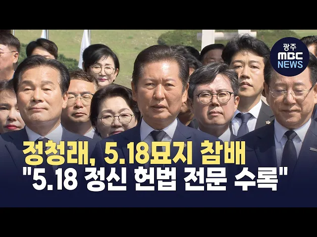 더불어민주당 차기 대표 후보로 거론되는정청래 의원이국립 5.18 민주묘지를 찾아 참배했습니다.이재명 대통령 당선 국민 감사투어로 국립 5.18 민주묘지를 찾은 정청래 의원은12.3 내란을 막아준 5.18영령들께 감사드린다며5.18 정신을 헌법 전문에 수록하겠다는대국민 약속을 반드시 지키겠다고 밝혔습니다.또 내란세력 ...