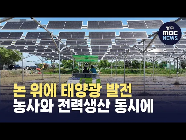 (앵커)탄소중립을 위한 신재생에너지 확대가 화두인 가운데,벼농사와 전력 생산을 동시에 할 수 있는'영농형 태양광' 실험이 영암에서 진행되고 있습니다.수확량과 품질, 수익성까지 꼼꼼히 따져농촌의 새로운 에너지 수익 모델을 찾겠다는 구상입니다.박종호 기잡니다.(기자)모내기가 한참인 영암군의 한 논.태양광 구조물...