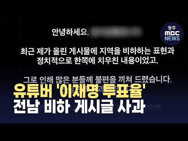 유튜버 '이재명 투표율' 전남 비하 게시글 사과