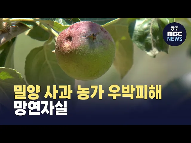 (앵커)지난주 밀양시 산내면 일대에 국지성 폭우와 함께 우박이 쏟아졌습니다.지역 대표 특산물인 밀양 얼음골 사과 과수원 대부분이 피해를 입었는데 올해 수확은 고사하고 내년 농사마저 걱정입니다.MBC경남 신동식 기자의 보도입니다. (기자)지난달 29일 밀양시 산내면 오치마을.천둥번개와 함께 우박이 쏟아집니다.40분...