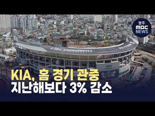 프로야구 관중이 역대 최소 경기만에 500만 명을 돌파한 가운데 기아 타이거즈만 홈 관중이 3% 줄었습니다.KBO에 따르면 올 시즌 28경기가 치러진 광주 챔피언스필드를 찾은 관중은 47만 6천 6백 여 명으로 지난해보다 3% 감소했습니다.한 경기 당 평균 관중도 지난해 만 7천 5백여 명에서 올해는 만 7천 여 명으로 줄었는...