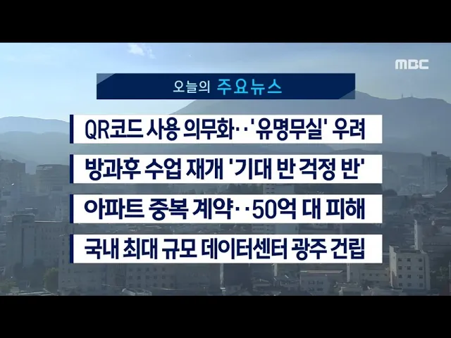오늘부터 유흥시설이나 실내체육시설에서 전자출입명부 작성이 의무화됩니다. 하지만 유명무실해질 수 있다는 우려가 나오고 있습니다. ============================================ 광주시교육청이 방과후 수업을 단계적으로 허용하기로 했습니다. 코로나로 인한 학습 공백을 메울 수 있다는 기대와 감염 위험이 커질 수...