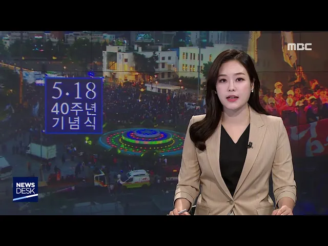 (수) 여러분 안녕하십니까? (빛) 5.18 40주년 기념일 광주MBC 뉴스데스크입니다. (수) 지난 40년은 무척 고통스러웠지만 자랑스러운 역사였습니다. (빛) 집권야욕에 눈먼 군부의 총칼에 맞서 광주시민들은 마지막 순간까지 민주주의와 민중의 자존을 지키기 위해 싸웠습니다. 이후 광주의 정신을 지키고 알리는 여정에 또다...