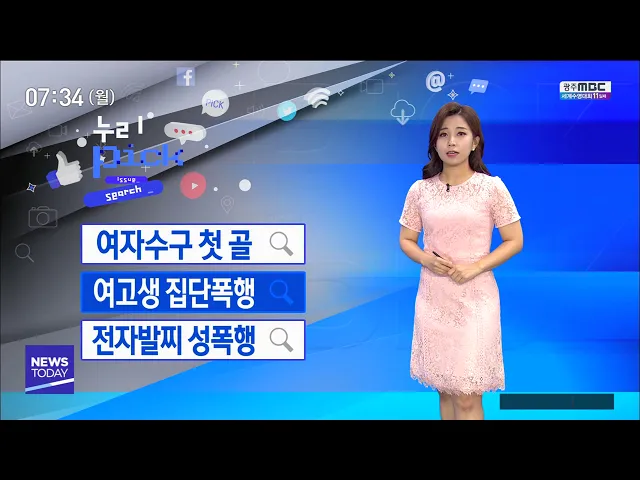 (뉴스리포터) 한 주간 누리꾼들의 관심사를 키워드로 정리해보는 '누리 픽' 시간입니다. 지난 한 주, 어떤 키워드가 많은 관심을 받았을까요? ‘여자수구 첫 골’‘여고생 집단폭행’ ‘전자발찌 성폭행’이 있었습니다. 어떤 내용인지, 먼저 ' 여자수구 첫 골 ' 부터 살펴보겠습니다~ -----------------------------------------...