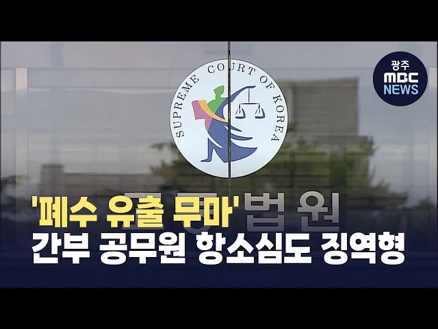 광주고법 형사1부가폐수 유출 사고를 무마한 혐의로 재판에 넘겨진 전남도청 간부 공무원에게항소심에서도 징역 10개월에 집행유예 2년을 선고했습니다.이 공무원은 지난 2020년, 전남의 한 공장에서 폐수 7천 리터가 유출됐지만 업체가 행정처분을 받지 않도록 사고를 종결하고, 수사가 시작되자 관련 공문서를 허위로 작...