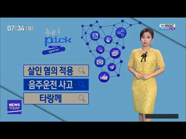 (뉴스리포터) 한 주간 누리꾼들의 관심사를 키워드로 정리해보는 '누리 픽' 시간입니다. 지난 한 주, 어떤 키워드가 많은 관심을 받았을까요? '살인 혐의 적용'와 '음주운전 사고', '타랑께' 가 있었습니다. 어떤 내용인지, 먼저 '살인 혐의 적용' 부터 살펴보겠습니다~ -------------------------------------------- ◀V...