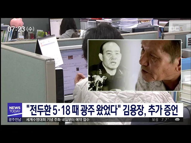 오늘의 주요뉴스... 80년 5월 21일 전남도청 앞 집단발포 직전 전두환씨가 광주에 왔었다고 전직 미군 정보요원이 증언했습니다. ------------------------------------------- 명예훼손 혐의로 기소된 전두환씨의 재판에서 5.18 당시 헬기 사격이 있었다는 구체적인 증언이 쏟아졌습니다. -------------------------------...