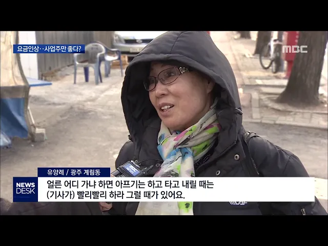 비탈길에 주차돼 있던 노후 화물차가 아래로 돌진해 시내버스를 들이받았습니다. 몸으로 차를 막으려던 화물차 운전자가 숨지고 버스 승객들이 다쳤습니다. ---------------------------------------- 내일부터 광주의 택시요금이 오릅니다. 물가 인상을 감안한 조치라지만 이용자인 시민과 택시 기사들은 내켜하지 않는 반...