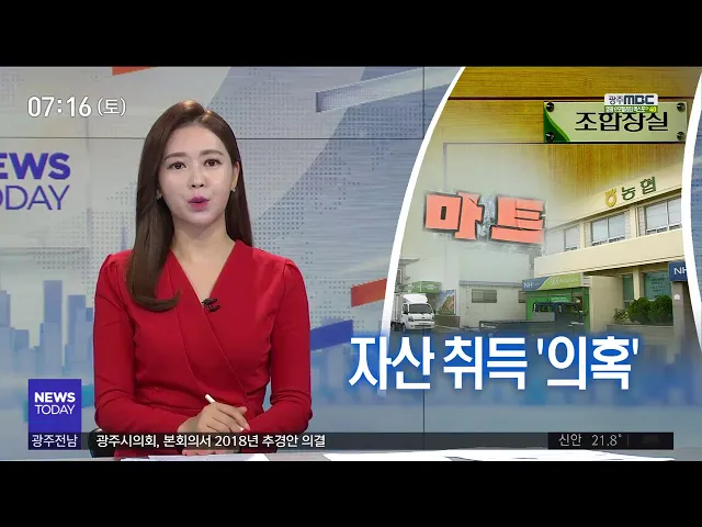 오늘의 주요 뉴스 ** 나주 혁신산단 인근에 에너지스마트 국가산단 개발이 추진돼 에너지밸리 조성 사업이 탄력을 받게 됐습니다 ** 애매한 법 조항이 신재생에너지 발전소 신설을 둘러싼 논란을 부추기고 있습니다 ** 당선 무효형이 선고되기 하루전에 대규모 자산 거래를 한 농협 조합장에 대해 의혹이 일고 있습니다. **...