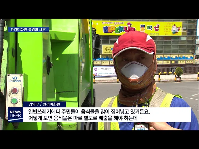 오늘의 주요뉴스 광주시가 도심 열섬 현상을 줄이기 위해 지난해부터 온도 1도 낮추기 사업을 추진하고 있지만, 성과를 거두지 못하고 있습니다. ------------------------------------------- 쾌적한 거리를 만들기 위해 폭염과 사투를 벌이고 있는 환경미화원들의 하루를 취재했습니다. --------------------------------...