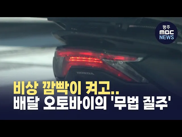 (앵커)요즘 부쩍 비상등을 켠 채 도로를 주행하는 배달 오토바이 많이 보셨을텐데요.어디로 갈지, 주행 방향을 예측할 수 없어 교통사고 위험이 큽니다.법적으로도 명백한 불법입니다.춘천문화방송 김준겸 기자가 현장 취재했습니다. (기자)음식점이 즐비한 춘천의 한 식당가.점심 시간이 가까워 오자 배달 오토바이가 비상...