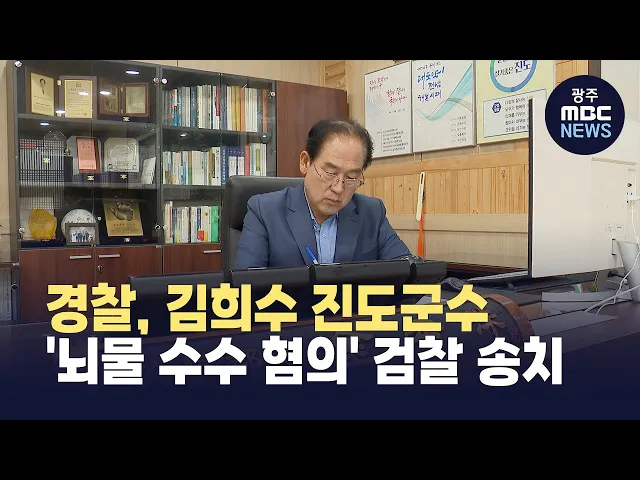 김희수 진도군수가 측근 사업가로부터 사택 정원 조성 과정에서 수천만 원 상당의 뇌물을 받은 혐의로 검찰에 송치됐습니다.전남경찰청 반부패경제범죄수사1대는 김 군수가 지난 2023년, 진도군 진도읍에 사택을 조성하면서 항만시설 사용 허가를 둘러싸고 한 업체로부터 수천만 원 상당의 석재와 조경수를 제공받은 것으로...