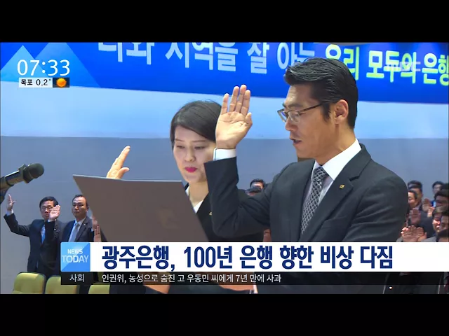 ** 2018년 새해가 밝았습니다. 시민들은 무등산 등 해맞이 명소를 찾아 올 한해 건강과 안녕을 기원하고 있습니다. ** 국민의당 전당원 투표에서 통합 찬성이 3/4을 차지한 가운데, 찬반 양론이 가열되고 있어 분당 가능성 등 내홍이 중대고비를 맞고 있습니다. ** 광주의 한 아파트에서 한밤중에 불이나 어린이 3명이 목...