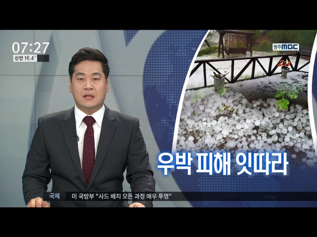 갑작스런 우박으로 인한 전남 농작물 피해가 천 6백 헥타르를 넘었습니다. ** 우박 피해는 후유증이 큰 데 피해 보상이 막막해 농가들이 망연자실해하고 있습니다. ** 해외 출장 중 광주시 공무원의 산하기관 여직원 성추행.. 특정인의 문제가 아닌 관행적으로 이뤄진 '갑질'이란 의혹과 함께 관련 협회와의 유착 의혹도 ...