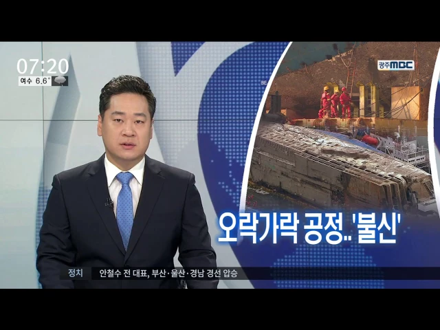 오늘의 주요뉴스... 세월호가 3년만에 물 밖으로 모습을 드러낸 가운데 인양작업이 계속되고 있습니다. 많은 사람들이 긴장 속에 온전한 인양을 기다리고 있습니다. ------------------------------------------- 최대 승부처인 호남 경선을 앞두고 민주당과 국민의당의 대선 후보들의 공약 대결과 민심 잡기 경쟁이 치열합...