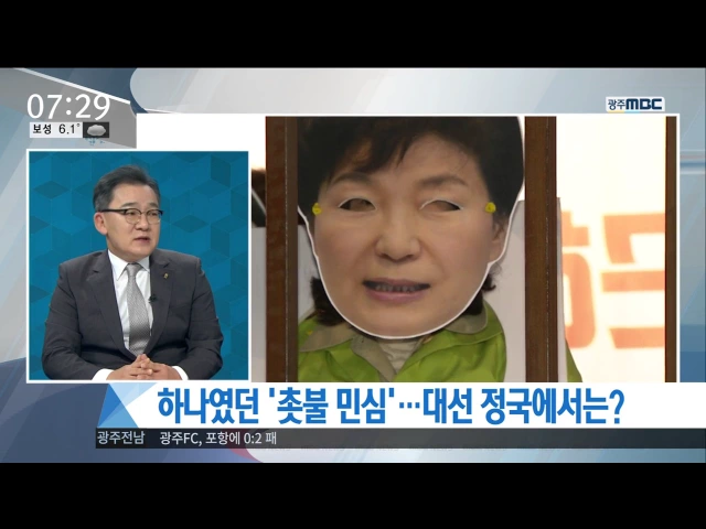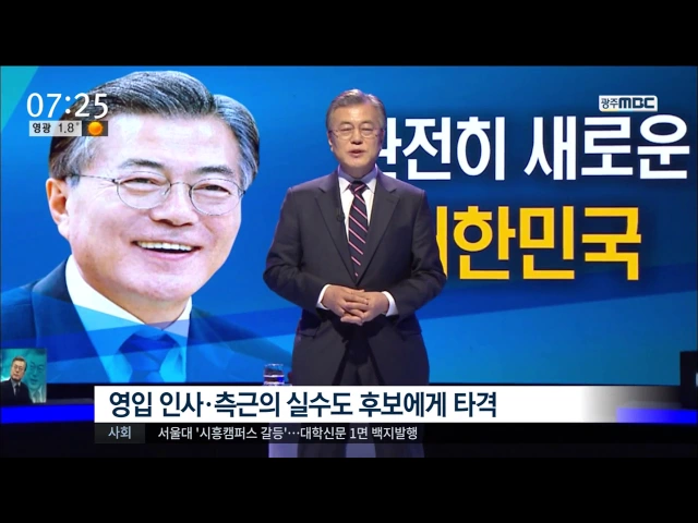 오늘의 주요뉴스... 19대 대선이 5월 9일로 확정된 가운데 야권 대선 주자들이 초반 기세를 잡기 위해 호남에 연일 공을 들이고 있습니다. ------------------------------------------- 차기 정부가 들어선 뒤 치러지는 5.18 민주화운동 기념행사가 보수 집권 시기에 격하됐던 위상을 되찾을 수 있을 지 주목됩니다. -----...