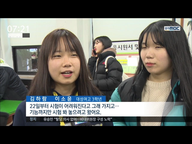 광주지역 고등학생들이 그동안 반강제적으로 받아왔던 보충학습이나 야간 자율학습을 자율적으로 선택할 수 있게 됐습니다. ************** 학교마다 A형 독감이 빠르게 확산하고 있습니다. 전남에서만 2천 6백여명의 학생이 등교 중지 조치됐습니다. ************** 국민의당의 지지율 하락과 새누리당의 분당 움직임이 맞...