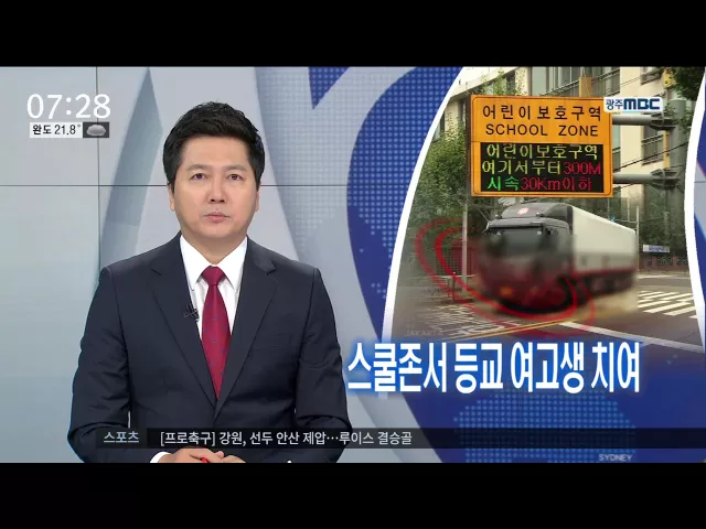 광주의 한 사립여고가 명문대 진학을 위해 학생 생활기록부를 조작한 사실이 경찰 수사 결과 확인됐습니다. 학부모와 교사간 돈도 오갔습니다. ********* 등교길의 고3 여학생이 스쿨존에서 추석 택배 업무를 마치고 집으로 돌아가던 길의 대형 화물차에 치여 목숨을 잃었습니다. ********* 광주시와 순천시가 유치경쟁을 ...