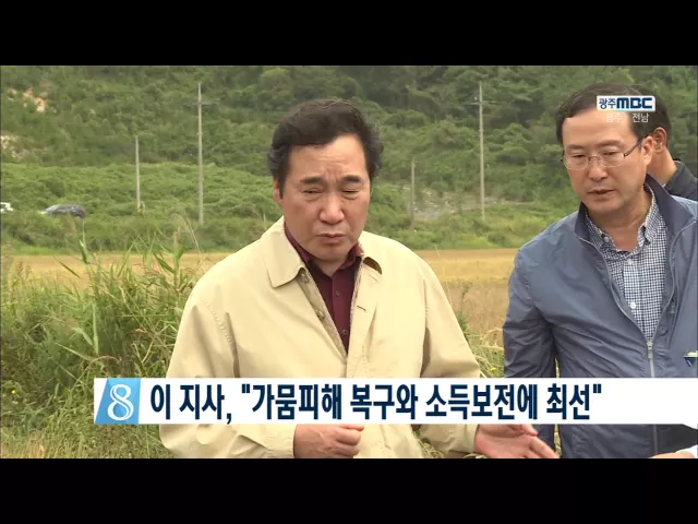 다음은 오늘의 주요뉴스입니다. 대선유력주자들이 추석을 앞두고 잇따라 광주를 찾고 있습니다. 어제(11일)는 문재인 더민주 전 대표가 광주를 찾았고 오늘은 더민주 김부겸 의원이 광주를 방문합니다. ------------------------------------------- 김용구 광주시 전 정책자문관이 구속되면서 광주시와 전라남도가 검찰 수...