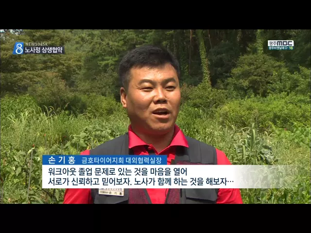 광주시가 추진하는 광주형 일자리 추진사업에 금호타이어가 동참하기로 했습니다. ********** 찌는듯한 무더위가 계속되면서 농작물 피해가 확산되고 있습니다. 비 소식도 당분간 없어 농심은 바짝 타들어가고 있습니다. ** 영산강에 '녹조' 관심 경보가 발령되면서 방류 작업이 시작됐습니다. 남해안 일부 해역에는 적조생...