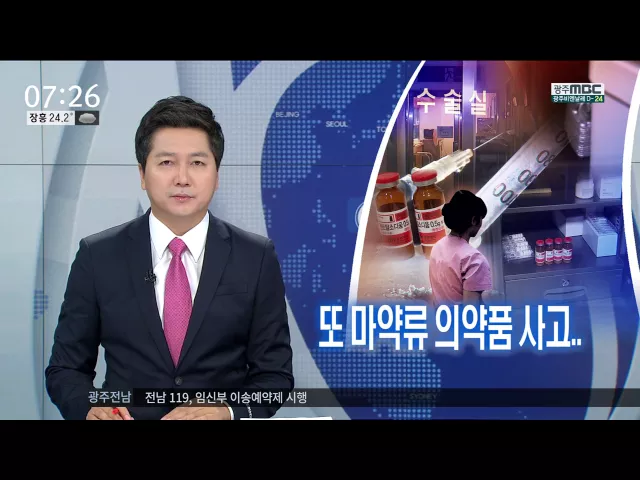 대통령 공약사업인 '자동차 백만대' 사업이 '친환경자동차 부품 클러스터' 사업으로 이름이 바뀝니다. 공약이 흐지부지 되는 것 아니냐는 비판이 나오고 있습니다. ------------------------------------------- 광주에서 마약류 의약품 사고가 끊이지 않고 있는 가운데 30대 간호 조무사가 마약류 마취제를 투약하고 숨진 ...