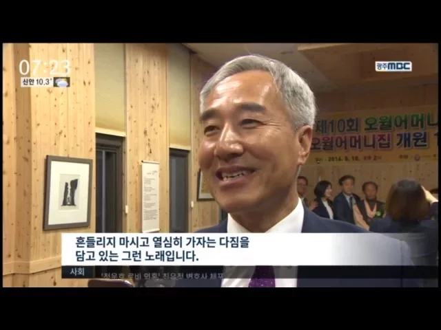 나주 혁신도시에 입주해있는 공공기관들이 소프트웨어 산업 육성에 힘을 함께 쏟기로 했습니다. *********** '임을 위한 행진곡'의 작곡자 김종률씨가 오월 어머니들을 위한 노래 '모란이 다시 피어도'를 만들어 헌정했습니다. 어머니들은 눈물을 훔쳤습니다. ************ 의류 사업을 하는 50대 기업가가 아동 운동복 2천...