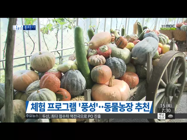 2015 국제농업박람회가 오늘 개막해 18일 동안의 대회 일정에 들어갔습니다. 창조농업과 힐링의 세계를 주제로 다음 달 1일까지 계속됩니다. ------------------------------------------ 현대 디자인의 흐름을 살펴볼 수 있는 광주 디자인비엔날레도 오늘부터 시작됐습니다. 국내외 유명 디자이너가 디자인하고, 지역업체...
