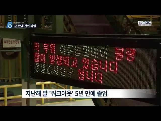 금호 타이어가 3년만에 전면 파업에 돌입한 가운데 근본적으로는 5년 동안의 워크아웃에 따른 후유증이 자리하고 있습니다. **** MBC 여론조사에서 지역민들은 호남 중심의 신당 창당에 부정적인 반응을 보였고 차기 대통령 후보로는 박원순 서울시장을 가장 많이 꼽았습니다. ******* 천연기념물인 수달이 죽은 채로 발견...