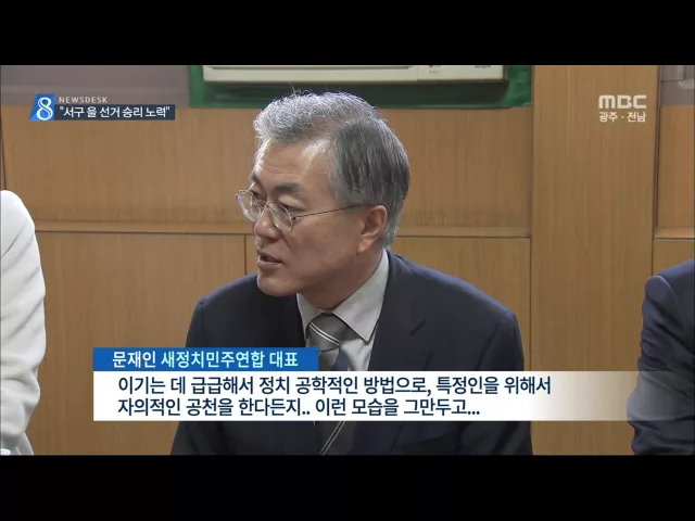 1.함평나비축제가 40여 일 앞으로 다가왔습니다. 올해 축제 에는 15만 마리의 나비가 선보일 예정인 가운데 나비 사육이 한창입니다. /////////////////////////////////////////// 2.광주 서구을 재보궐선거를 앞두고 문재인 대표를 비롯한 새정치민주연합 지도부가 광주에 모였습니다. 무소속인 천정배 전 장관의 기세를 ...