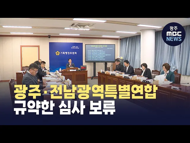 전남도의회가 집행부와 소통 부족 등을 내세워 광주전남 광역특별연합 규약안 심사를 보류했습니다.전남도의회 기획행정위원회는 지난 15일 전남도지사가 제출한 '광주·전남 특별광역연합 규약안'에 대해의원들이 내용을 모르는 데다 행정예고 기간 단축, 연합의회의 표결교착우려 등을 이유로 심사를 보류했습니다.광주·전...