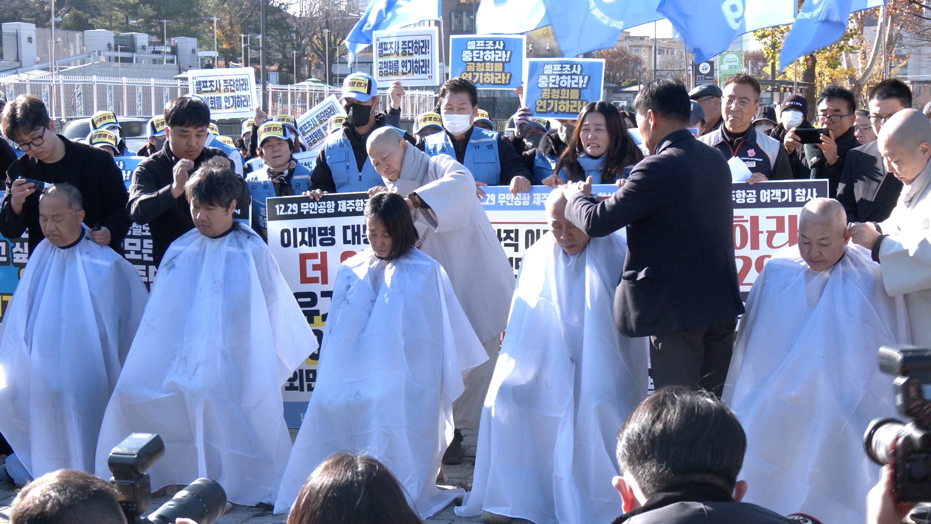 제주항공 참사 유족, '사조위 공청회' 반발..삭발·농성