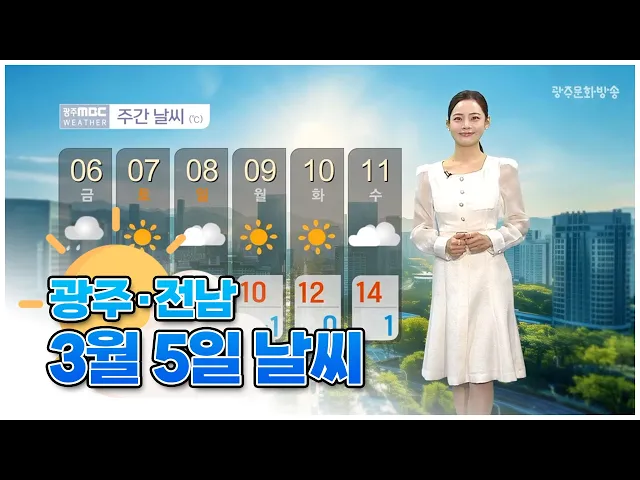 오늘 맑은 날씨가 이어지겠지만일교차는 크게 벌어질 것으로 보여서옷차림에는 유의하셔야겠습니다.현재 하늘모습 보시면깨끗한 하늘 드러나 있습니다.종일 맑은 가운데활동하기 무난한 날씨가 예상되고요미세먼지 농도는 보통수준으로먼지 걱정도 없겠습니다.다만, 기온차는 크게 나겠습니다.광주의 출근길 기온 3℃ 안팎에...