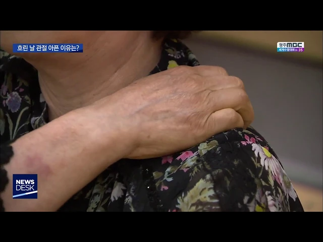 ◀ANC▶ 어제와 오늘 비가 내리면서 날이 흐렸습니다. 이런 날씨에는 관절 통증을 호소하는 어르신들이 늘어나는데요. 날이 궂은 날 유독 관절이 시리고 아픈 건 "기상병"때문이라고 합니다. 이다솔 기상캐스터가 전해드립니다. ◀VCR▶ 어제에 이어 오늘도 하늘표정은 종일 흐렸습니다. 저기압의 영향권에 들어 우중충한...