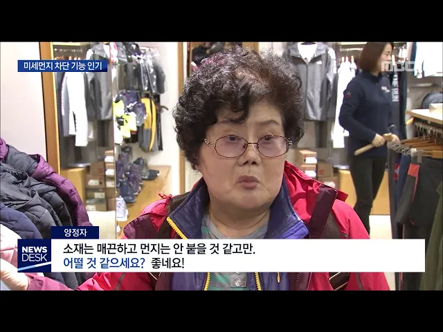 ◀ANC▶ 올봄 최악의 미세먼지가 기승을 부리면서 각종 미세먼지 차단 제품들이 인기인데요, 이제는 아웃도어 매장의 트렌드도 바뀌고 있다고 합니다. 이다솔 기상캐스터가 전해드립니다. ◀VCR▶ 봄철을 맞아 신제품이 쏟아진 아웃도어 매장. 그 중에서도 보통의 제품과 다른, 독특한 디자인의 제품이 눈에 띕니다. 목 ...