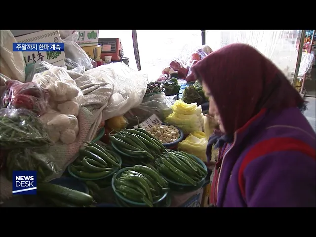 ◀ANC▶ 세밑 한파의 기세가 매섭습니다. 오늘도 하루종일 영하권이었습니다. 맹추위는 주말에도 이어진다는데요. 대비가 필요해 보입니다. 이다솔 기상캐스터가 전해드립니다. ◀VCR▶ 연일 동장군의 기세가 이어지고 있습니다. 두꺼운 외투와 목도리, 마스크 등으로 온 몸을 꽁꽁 싸매보지만 매섭게 파고드는 칼바람에 ...