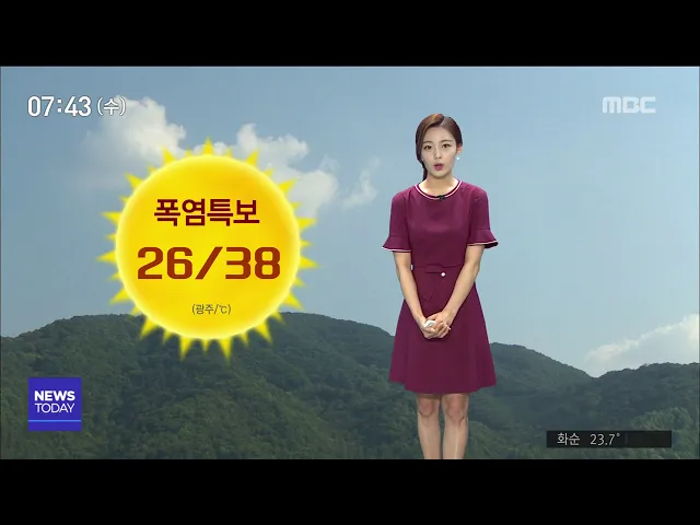 휴일인 오늘도 불볕더위가 계속되면서 광주의 폭염지속일수가 25일째를 기록했습니다. 광주지방 기상청에 따르면 광주의 오늘 낮 최고기온은 38.4도, 나주 36.1도, 여수 37.9도 등 광주전남 대부분 지역의 낮 기온이 35도를 훌쩍 넘어섰습니다. 오늘 밤에도 폭염은 계속 돼 광주지역 기준으로 16일째 열대야가 이어지겠습니...