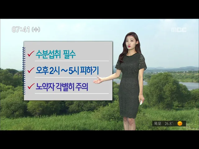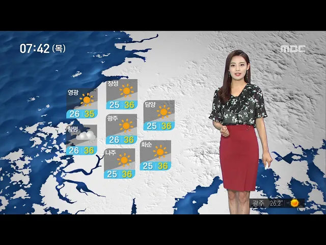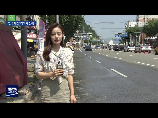 ◀ANC▶ 폭염의 기세가 꺾이지 않습니다. 광주시는 도로에 물을 뿌리는 이른바 '살수 대첩'에 나섰지만 달아오른 도심은 좀처럼 식지 않습니다. 이번 주말엔 기온이 더 오르고 당분간 비소식도 없다고 합니다. 이다솔 기상캐스터 입니다. ◀VCR▶ 폭염특보가 발효된 지 어느덧 열하루째. 덥고 습한 공기에 숨이 턱 막히고...