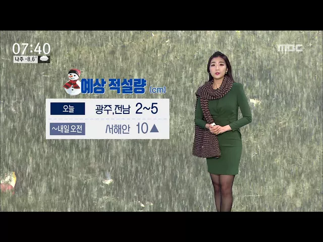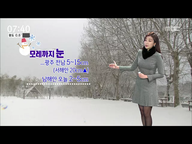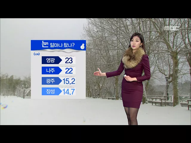 (앵커) 마치 하늘에 구멍이라도 난듯 쉼없이 눈이 내린 하루였습니다. 많은 곳은 20센티미터가 넘는 눈이 내렸는데요.. 전남 4개 지역에는 대설경보가 내려져 있고 나머지 지역에도 대설주의보가 내려져 있습니다. 폭설과 한파는 이번 주말까지 이어진다고 하는데 .. 백단비 기상 캐스터가 자세한 날씨 소식 전해드립니다 (...