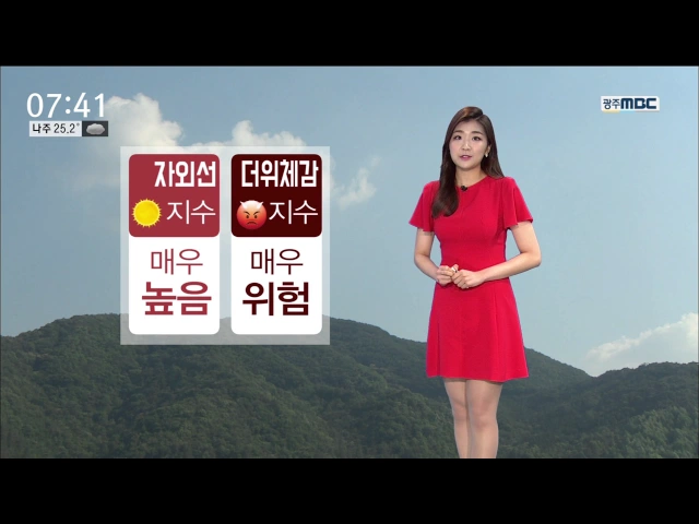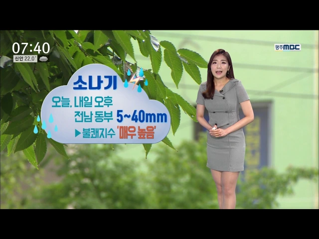 대체로 흐린 가운데 퇴근길 산발적으로 빗방울이 떨어지는 곳이 있겠습니다. 내일과 모레 오후부터 밤 사이에는 대기불안정 으로 인해 돌풍과 천둥,번개를 동반한 소나기가 내리겠습니다. 내일 전남 동부 내륙을 중심으로 5~20mm의 강우가 예상됩니다. 광주와 전남 10개 시,군에 내려진 폭염주의보가 계속되는 가운데, 오늘...