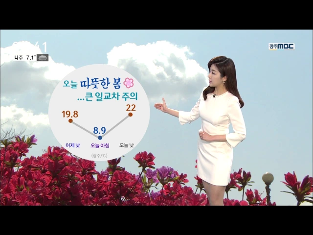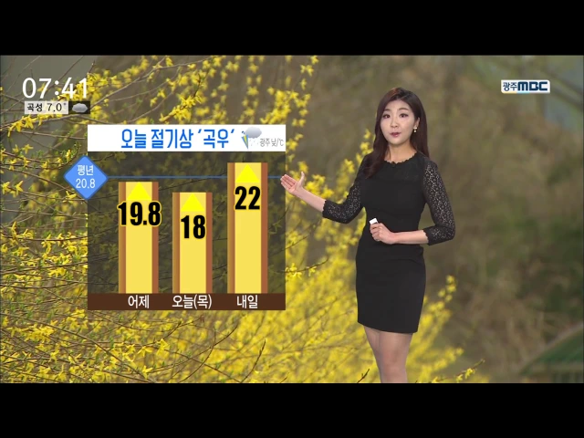 광주와 전남지역은 황사의 영향을 받으면서 미세먼지 농도가 계속해서 '나쁨' 단계를 유지하겠습니다. 절기상 '곡우'인 오늘 퇴근길 곳곳에 5mm 안팎의 비가 내릴 것으로 보입니다. 광주의 내일 낮 최고 기온은 22도로 오늘보다 4도가량 높겠습니다. 기상청은 이번 주말 낮기온 20도 안팎을 보이면서 맑고 포근하겠다고 전...