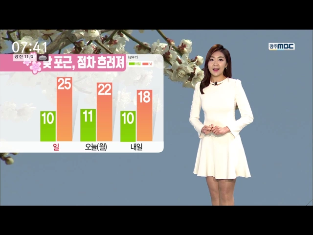 오늘 밤부터 차차 흐려지면서 비가 내리겠습니다. 내일 아침까지 광주와 전남 지역은 5~20mm, 남해안은 10~40mm의 비가 예상됩니다. 비가 그친 뒤 내일 낮에는 기온이 떨어지며 바람이 강하게 불겠습니다. 광주의 내일 낮 최고 기온은 18도로 오늘보다 5도 가량 낮겠습니다. 기상청은 이번주에 비가 내렸다 그쳤다를 반복...