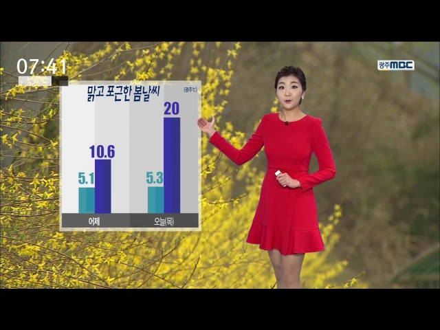 오늘 광주의 낮 최고 기온이 23.9도까지 오르면서 완연한 봄날씨를 보였습니다. 주말 동안에도 맑고 화창한 봄날씨가 이어질 것으로 보입니다. 토요일인 내일도 광주의 낮 최고 기온이 23도까지 오르겠습니다. 당분간 일교차가 커서 새벽에 안개가 짙게 낄 것으로 예상됩니다. 기상청은 다음주에도 뚜렷한 비소식이 없이 ...