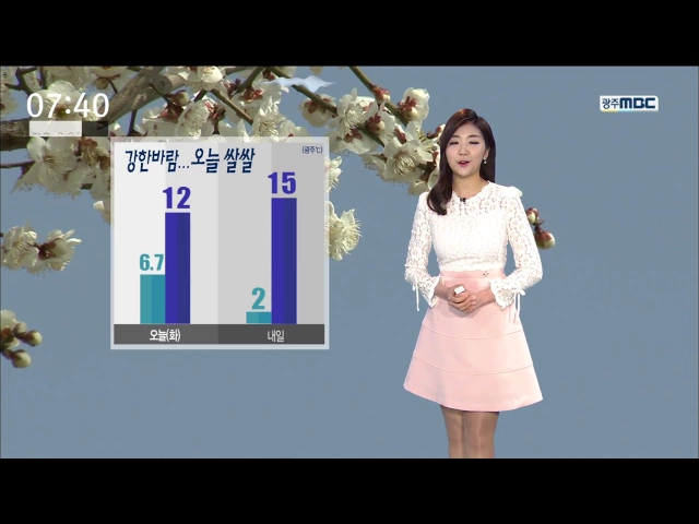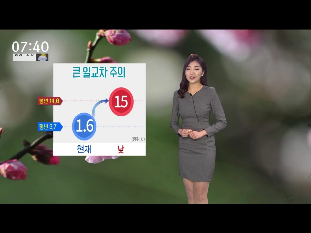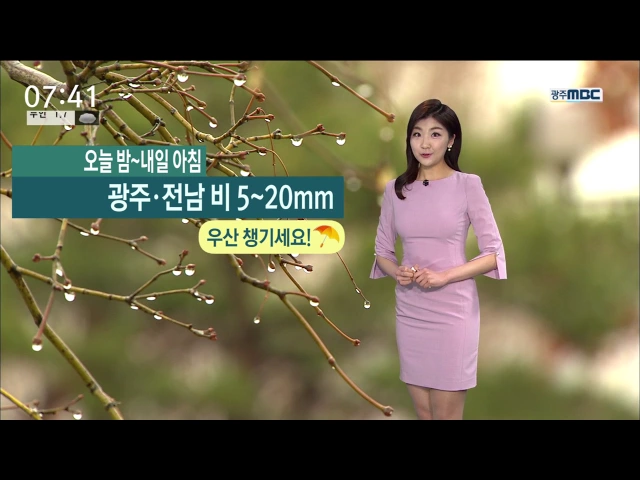 오늘 밤부터 광주와 전남 지역에 비가 내리기 시작해 내일 아침까지 5~20mm의 비가 예상됩니다. 내일 아침은 6도로 비교적 포근하게 출발하겠고 낮기온도 15도로 오늘과 비슷하겠습니다. 낮과 밤의 기온차가 커서 밤사이 내륙을 중심으로 안개가 끼는 곳이 많겠습니다. 기상청은 목요일부터는 맑은 날씨를 보이는 가운데 ...
